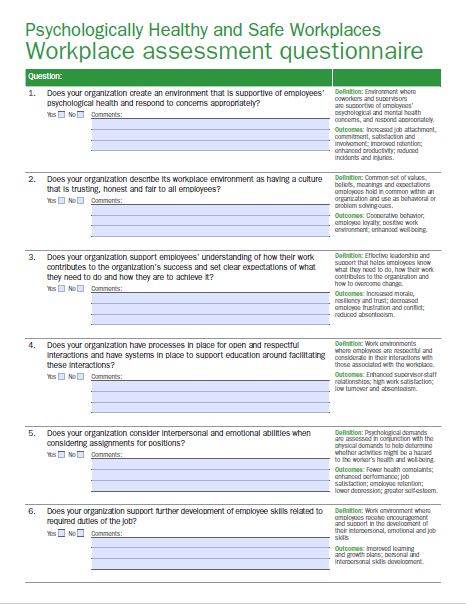 Visit the Psychological Health and Safety Resource Centre for information on creating a psychologically healthy and safe workplace.